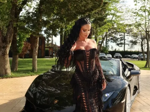 Influencerița a purtat o rochie neagră tip sirenă, cu umerii goi, decolteu adânc și trenă. După ce și-a semnalat prezența, bruneta a încărcat pe social media mai multe imagini în care apare alături de o parte dintre bolizii de lux ai lui Dorian Popa – vezi AICI imagini.