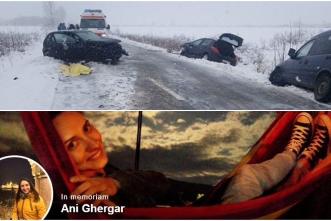 Femeia era din Arad, avea 28 de ani și absolvise Politehnica. Educatoarea a murit după ce autoturismul a intrat în coliziune cu o altă mașină. Polițiștii cred că vinovat a fost tânărul de 27 de ani aflat la volanul mașinii în care se afla educatoarea, relatează aradon.ro. Tânăra, care pe contul ei de Facebook se numea Ani Ghergar, se afla pe scaunul din dreapta al mașinii.