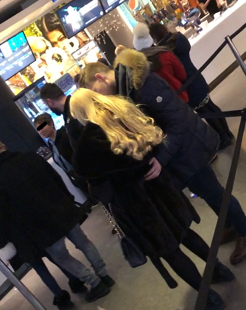 În așteptarea filmului, s-au îndreptat apoi spre zona de mâncare, unde nu s-au aruncat la ”prostioare”, ci s-au mulțumit să cumpăre o cutie de popcorn și o sticlă de apă plată, pentru că amândoi au grijă să se păstreze în formă.