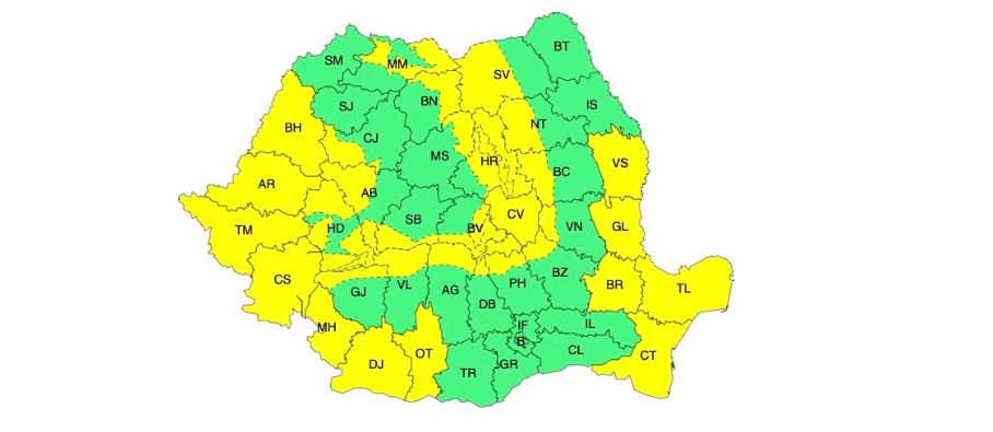 În Banat, Crișana, vestul și sudul Olteniei, Dobrogea, nord-estul Munteniei și în sud-estul Moldovei, temporar vântul va avea intensificări cu viteze de 50-60 km/h