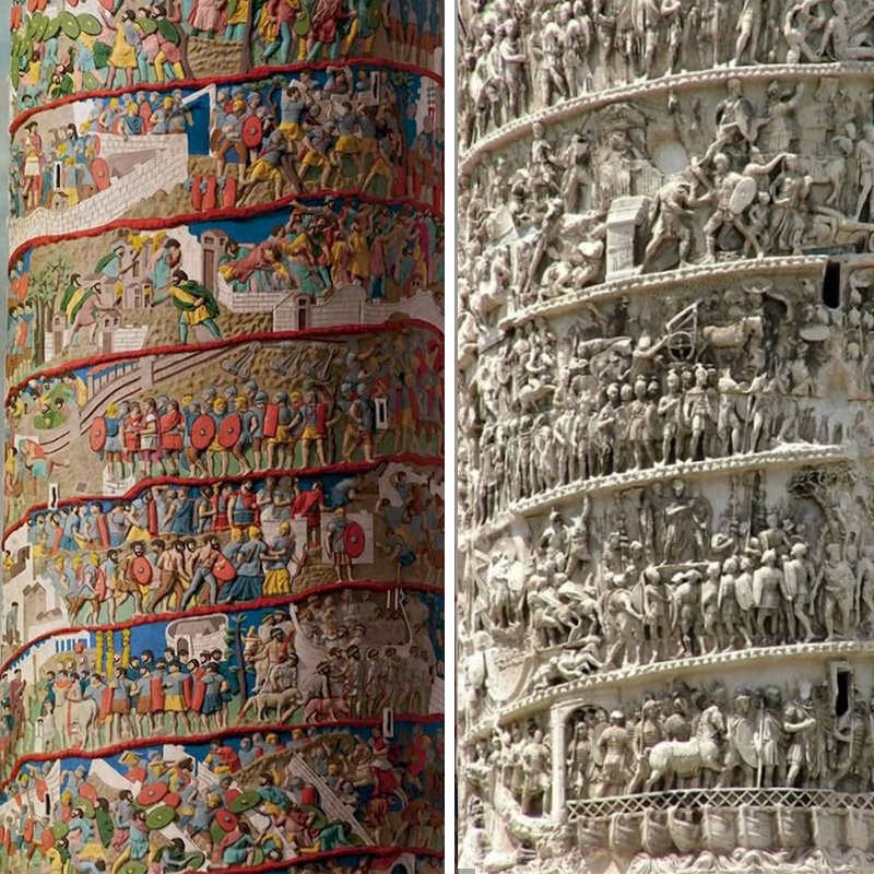 Relieful de pe Columnă a fost sculptat după ridicarea blocurile de marmură, echipele de artiști lucrând simultan, urcați pe schelele din jurul Columnei. Detaliile din reliefuri ne arată că artiștii aveau o serioasă experiență în sculptura monumentală.