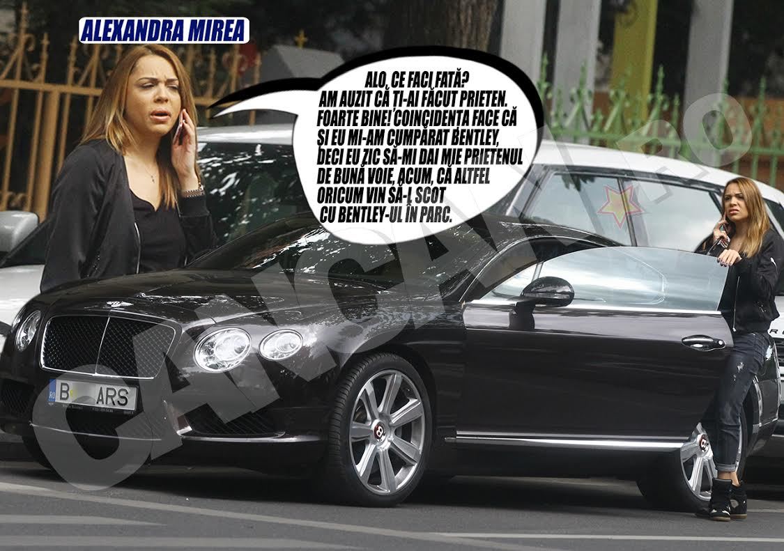 Alexandra Mirea a fost fotografiată cu noua sa maşină ”de oraş”. Îi spunem aşa pentru că domnişoara Mirea mai are şi nişte maşini mai de tăvăleală, ieftinături d-astea gen un Tiguan, pe care le foloseşte când merge în vizită la prietenii sau rudele mai sărace, alea de la ţară.