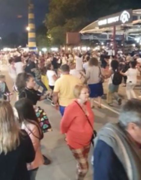 În urmă cu aproximativ două săptămâni, sute de turiști s-au prins într-o horă, în zona cazinou Mamaia, în fața unui local de unde răsuna muzică de petrecere.