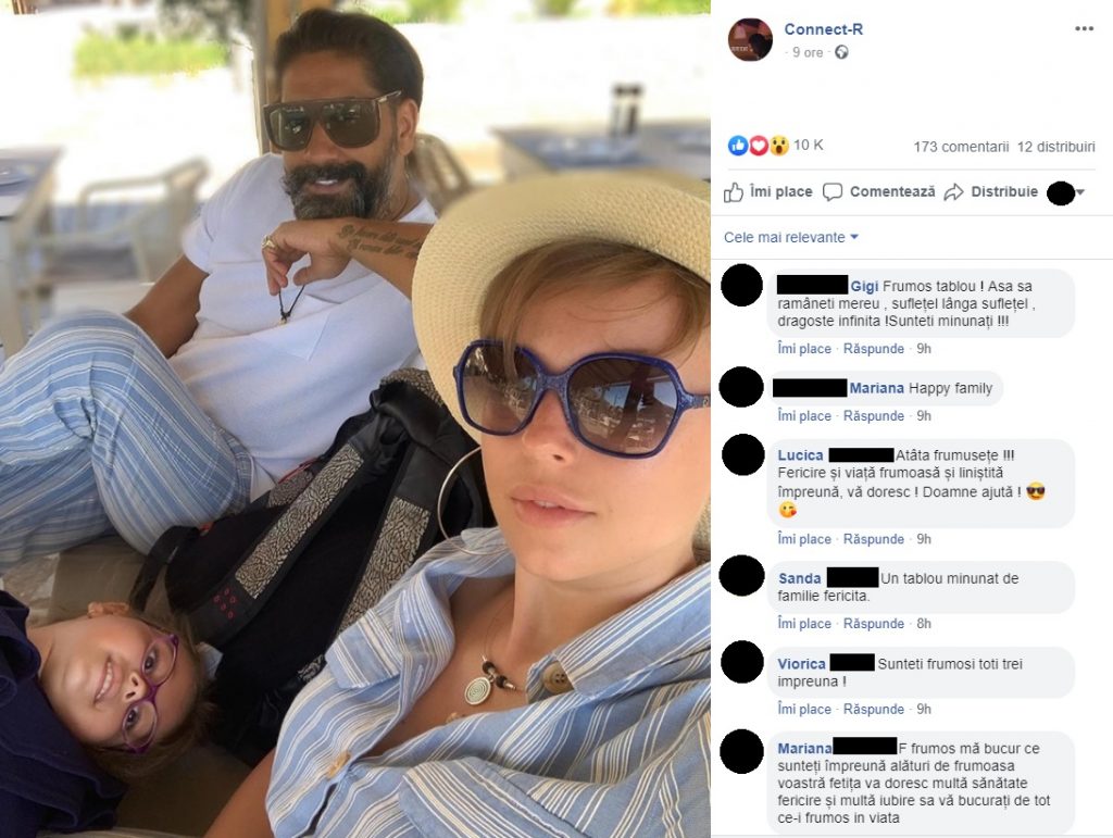 “Doamne ajuta, cred ca s-au împăcat ?❤?sa fiti sănătoși și fericiți împreună ❤❤❤”, “Foarte frumos! Mă bucur ce sunteți împreună alături de frumoasa voastră fetița va doresc multă sănătate fericire și multă iubire sa vă bucurați de tot ce-i frumos in viata”, “Asa, DA!!! Sanatate, bucurie si multa liniste sufleteasca va doresc! IMPREUNA SUNTEM MAI PUTERNICI! ♥” sunt trei dintre sutele de comentarii pe care artistul le-a strâns la poza de mai jos, pe care a postat-o atât pe Instagram, cât și pe Facebook.
