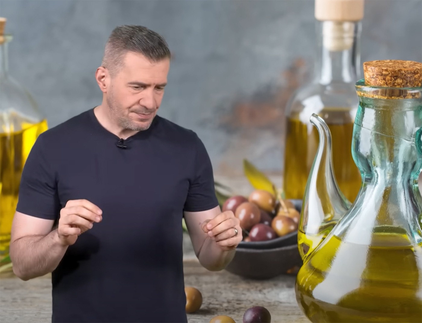 ”Vă invit la o discuție despre cel mai falsificat aliment din lume. Mai flasificat decât vinul, mierea etc. Pentru că este atât de falsificat, în jurul uleiului de măsline au apărut o mulțime de mituri. Un mit câștigă teren tot mai mult.