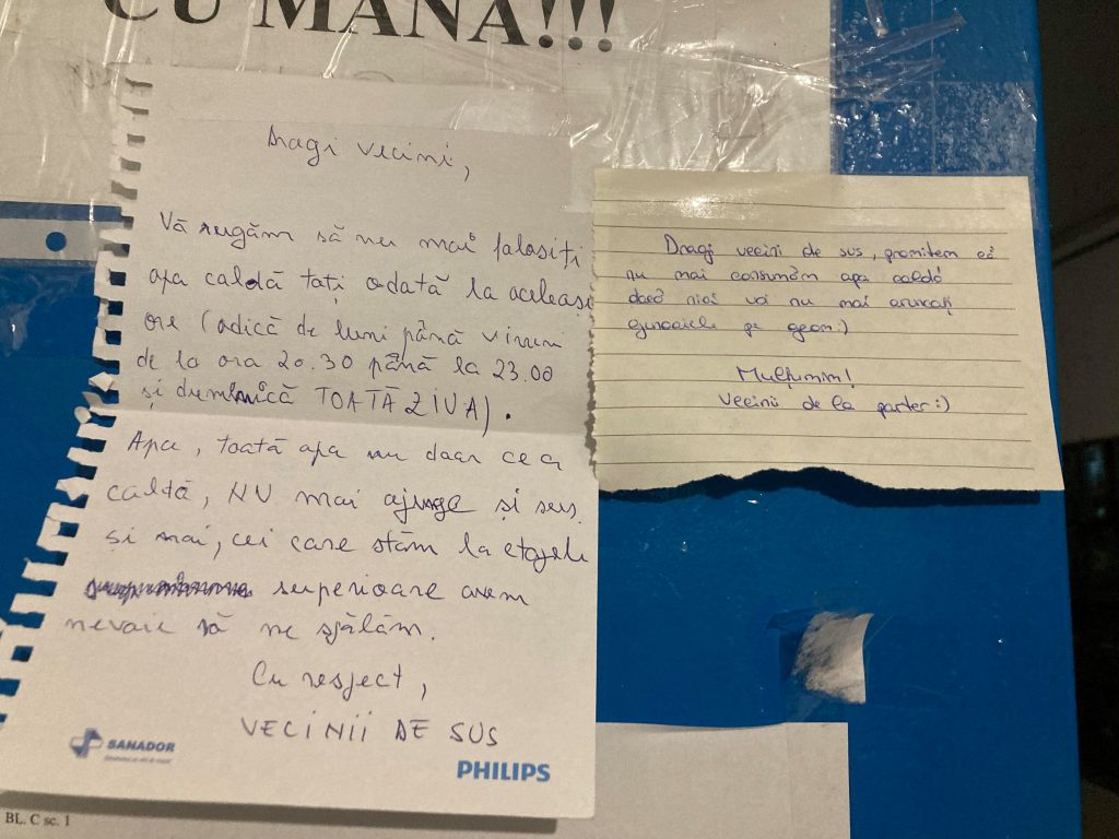 Acasă » Trending » Conversație hilară prin bilețele între locatarii unui bloc din Sectorul 2: „Și noi avem nevoie să ne spălăm”