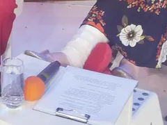 În vârstă de 68 de ani, frumoasa cântăreață a filmat pentru emisiunea pe care o prezintă cu piciorul bandajat şi sprijinit pe o pernă roșie.