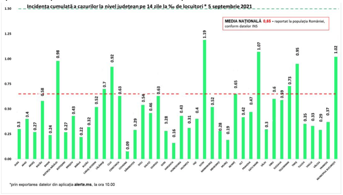 Pe 5 septembrie, în unitățile sanitare de profil, numărul total de persoane internate cu COVID-19 era de 3.061. Dintre acestea, 372 erau internate la ATI.