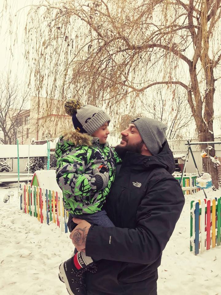 Cea mai recentă fotografie postată de Cristi Mitrea pe contul său de socializare îl înfățișează alături de David, afară, la zăpadă.