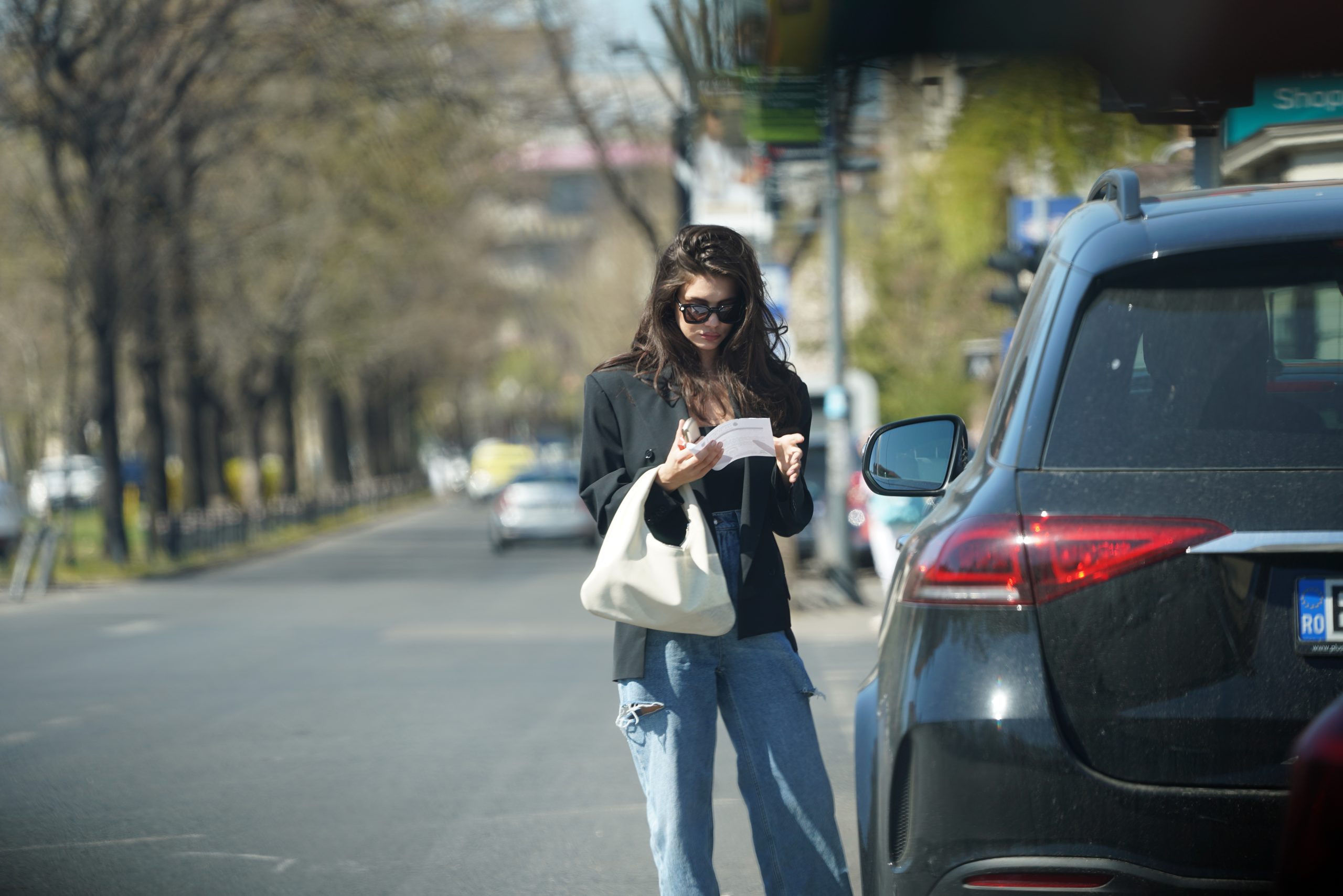 Cristina Ich a luat fluturașul de pe parbriz, imediat ce a ajuns în Dorobanți (Foto: CANCAN.RO)