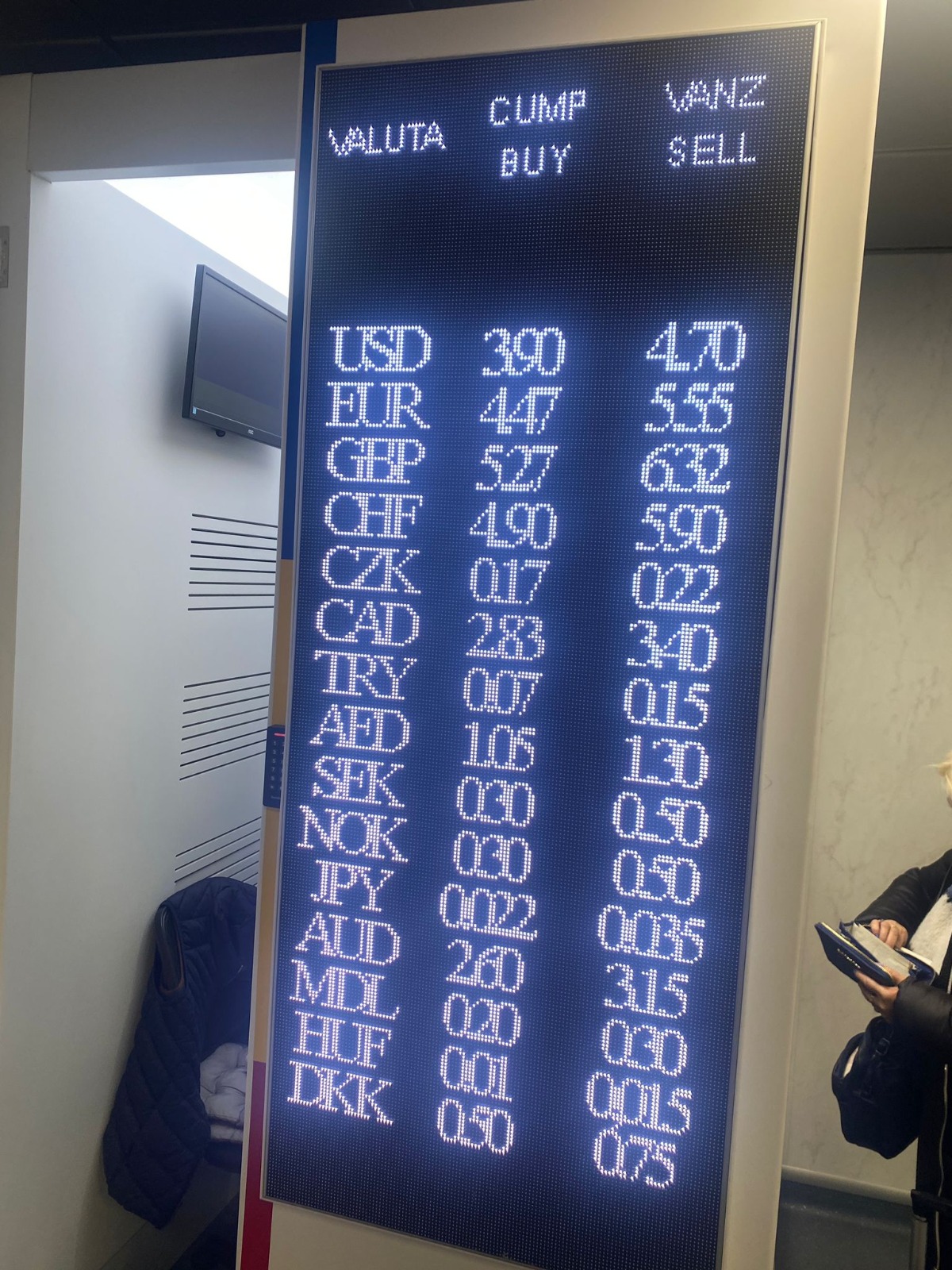 Pe lângă euro, cursul valutar pentru principalele monede la aeroport este următorul: