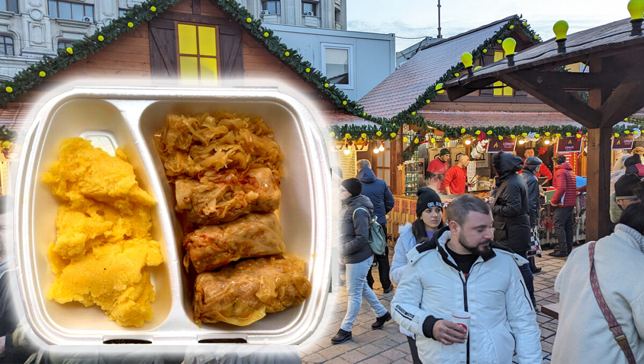 Doar zilele acestea va mai fi deschis târgul de Crăciun din București. Astfel, cei care doresc să se fotografieze cu sania lui Moș Crăciun, să ia parte la o tură cu roata panoramică sau să se înfrupte din preparate tradiționale o mai pot face până pe 26 decembrie 2023. Printre preparatele care sunt oferite spre vânzare, la târg, se numără și porția de sarmale cu mămăliguță. Pentru o porție de 200-150 de grame, clientul plătește 35 de lei.