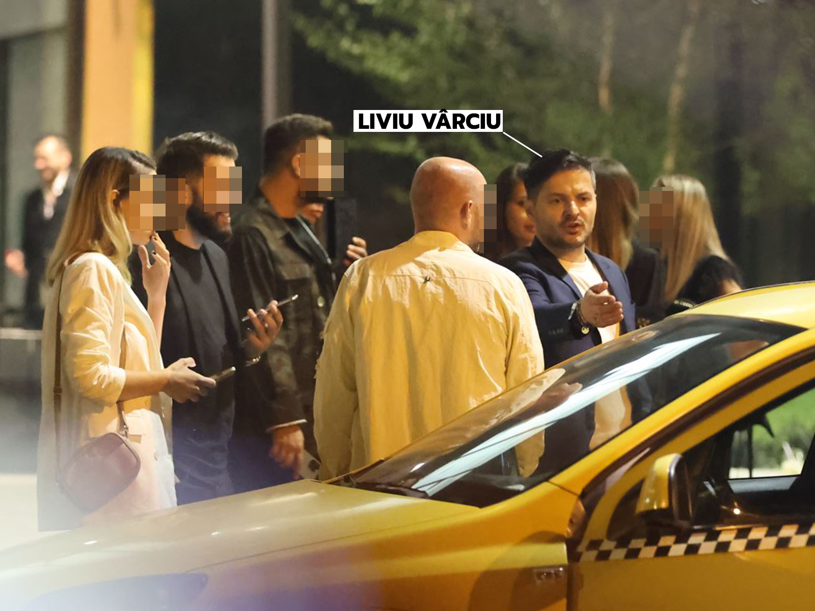 Au ieșit cu toții din local și au țintit un taxi. Aici și-a intrat în rol Liviu Vârciu. Au urmat negocieri dure cu șoferul, artistul reușind, în cele din urmă, să-l convingă să urce cinci în mașină, potrivit imaginilor realizate de CANCAN.RO.
