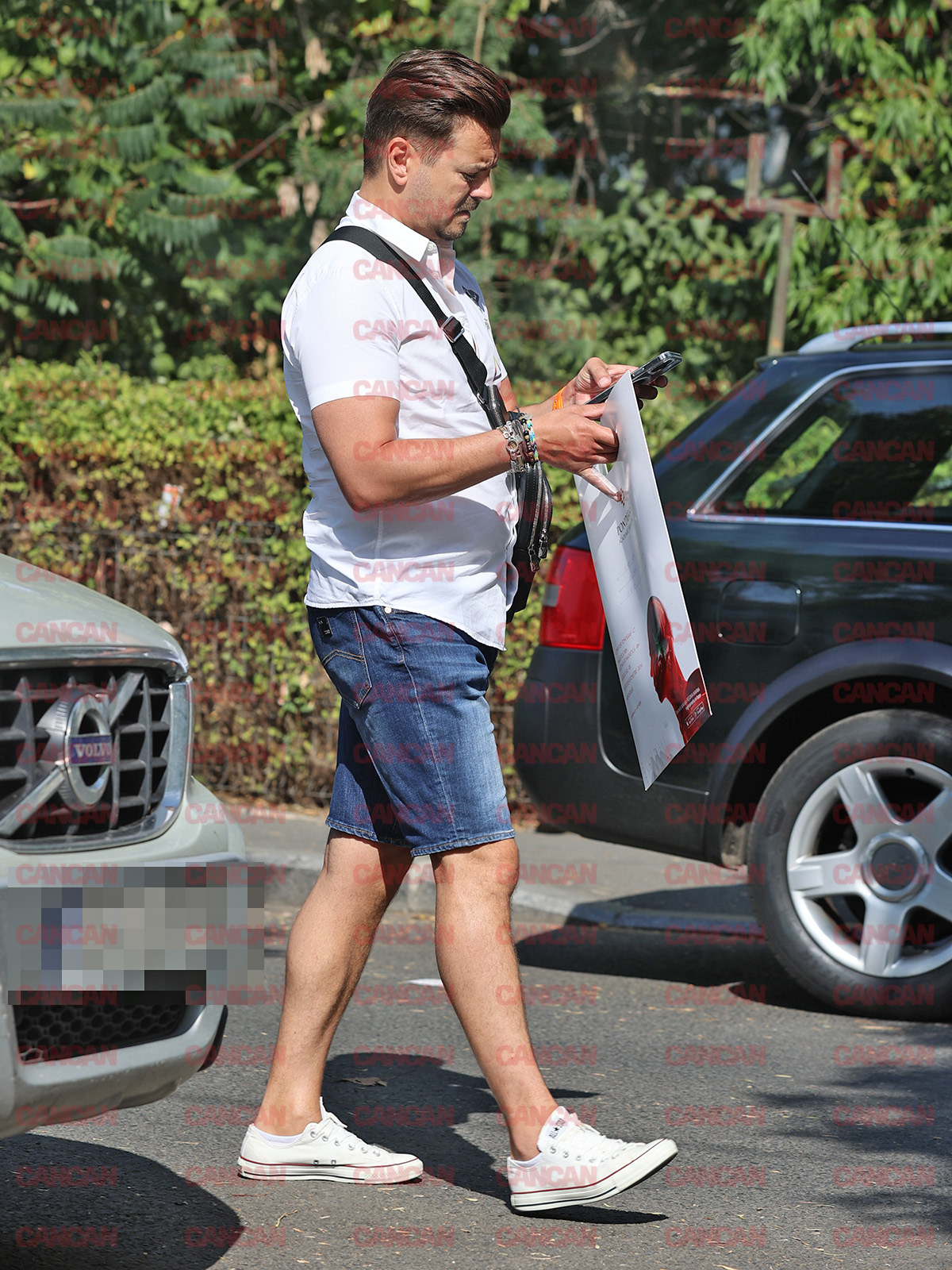 Îmbrăcat într-o ținută de vară, alegând să poarte o pereche de bermude și o cămașă albă, descheiată până la piept, haine asortate cu teniși în aceeași nuanță cu partea de sus a outfit-ului, dar și accesorizată cu o borsetă neagră și o serie de brățări în diferite culori, Mihai Petre a atras toate privirile pe stradă. Separat că e înzestrat cu o poziție impunătoare, orice ar purta, și e mereu țiplă până și la ultimul fir de păr. De această dată a putut ridica sprâncenele tuturor celor prezenți în zona de nord a Capitalei, acolo unde a mers să-și evalueze degetul. Iar asta pentru că nasturii de la cămașă țipau puțin. Nu că ar fi o neapărată problemă. De kilograme poate scăpa imediat dată fiind activitatea profesională pe care o întreprinde. Obișnuind, totuși, de-a lungul anilor cu trupul care i-ar putea face invidioși pe tinerii de 20 de ani, de această dată… Mihai Petre a surprins. E clar!