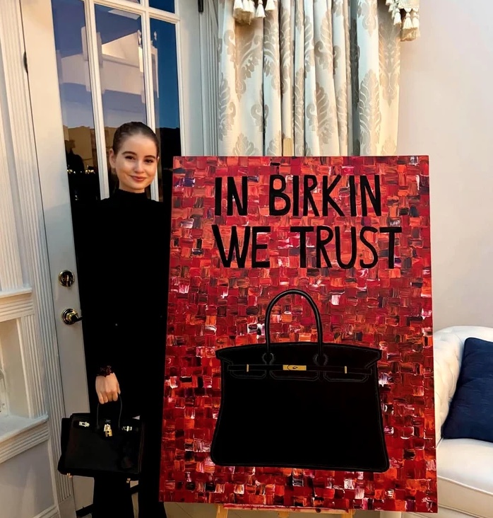 „Astăzi o să lucrez la o pictură nouă: In Birkin we trust. Nu am mai pictat de vreo cinci ani. Dacă nu erau mama mea și tatăl meu vitreg eu nu m-aș fi apucat din nou”, a mărturisit ea.