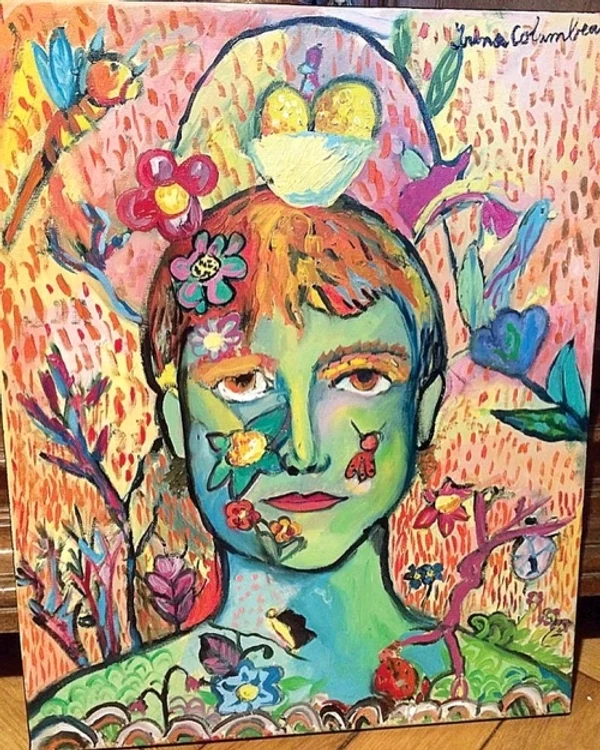 Talentele artistice ale Irinei au ieșit la iveală încă de la vârsta de șapte ani. De atunci, Irina Columbeanu a realizat numeroase lucrări, iar preferatele ei au rămas portretele și compozițiile abstracte. Cea mai recentă creație a tinerei a fost inspirată de celebra geantă Birkin neagră, cunoscută pentru prețul său care depășește 10.000 de euro.