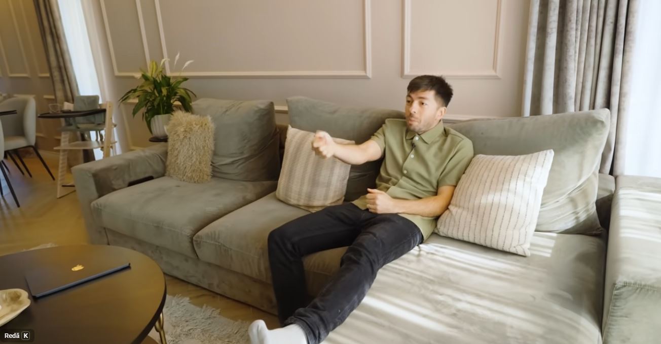 „Aici avem dormitorul, la dormitor am vrut să fim șmecheri din start, și eu, și soția mea suntem genul care adormeam cu televizor în cameră, până nu mai puteam, am zis că atunci când ne mutăm la casă nu ne punem televizor în cameră. Uitați, nu avem televizor în cameră, în schimb în fiecare seară dormim cu laptopul în pat cu noi”, a mai povestit Mircea Bravo.