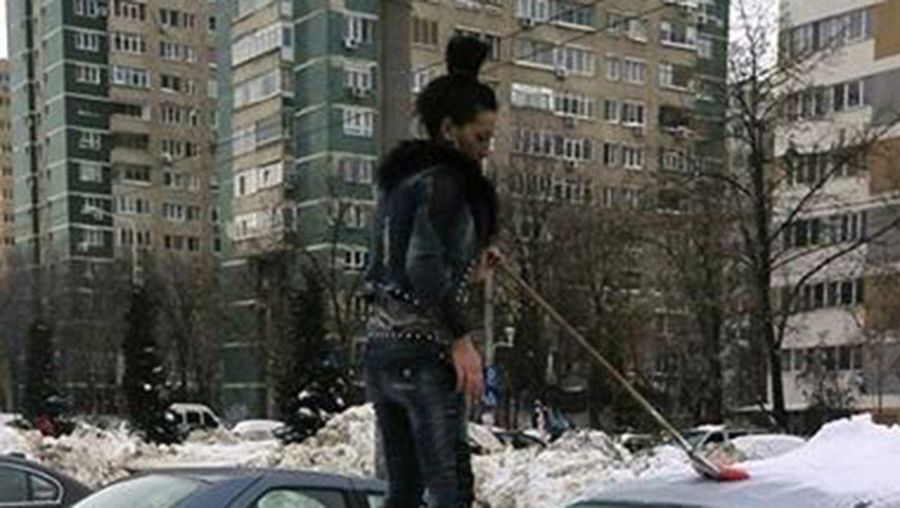 Dar proprietara ei nu s-a lasat intoarsa din drum si, „inarmata” cu o matura, a trecut la fapte. Si-a prins parul intr-un coc, in varful capului, si a inceput sa dea zapada jos de pe masina de zeci de mii de euro. Cand a ajuns insa la plafon, lurcrurile s-au complicat.