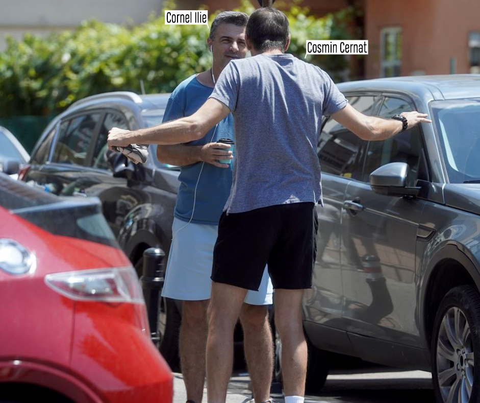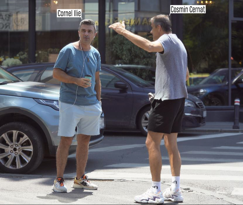 Dacă artistul a fost relaxat și mai tot timpul cu zâmbetul pe buze, ex-moderatorul de la Exatlon a părut un pic tensionat, din moment ce, aproape tot timpul, a gesticulat în fața bunului său prieten, care l-a ascultat cu maximă atenție. Cornel Ilie și Cosmin Cernat erau îmbrăcați super-lejer, fiecare cu pantaloni scurți și tricou. În picioare purtau câte o pereche de adidași.