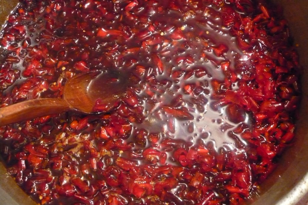 Ca oricare altă dulceață, și cea de ardei iute se fierbe în apă cu zahăr. În cazul în care nu sunteți pasionați de mâncarea extrem de picantă, puteți combina ardeii iuți cu câțiva ardei grași.