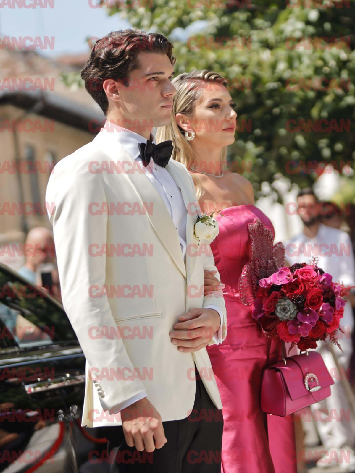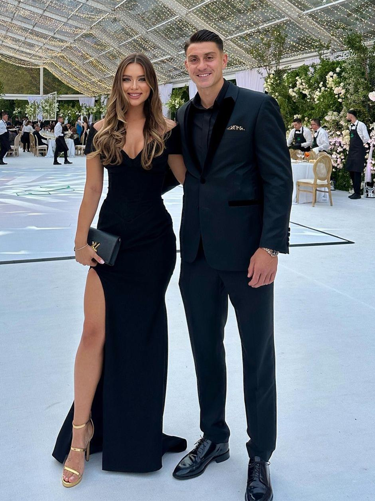 Dar să ne oprim la ținutele doamnelor, care au pășit pragul marelui eveniment, nunta lui Ianis Hagi și Elena.