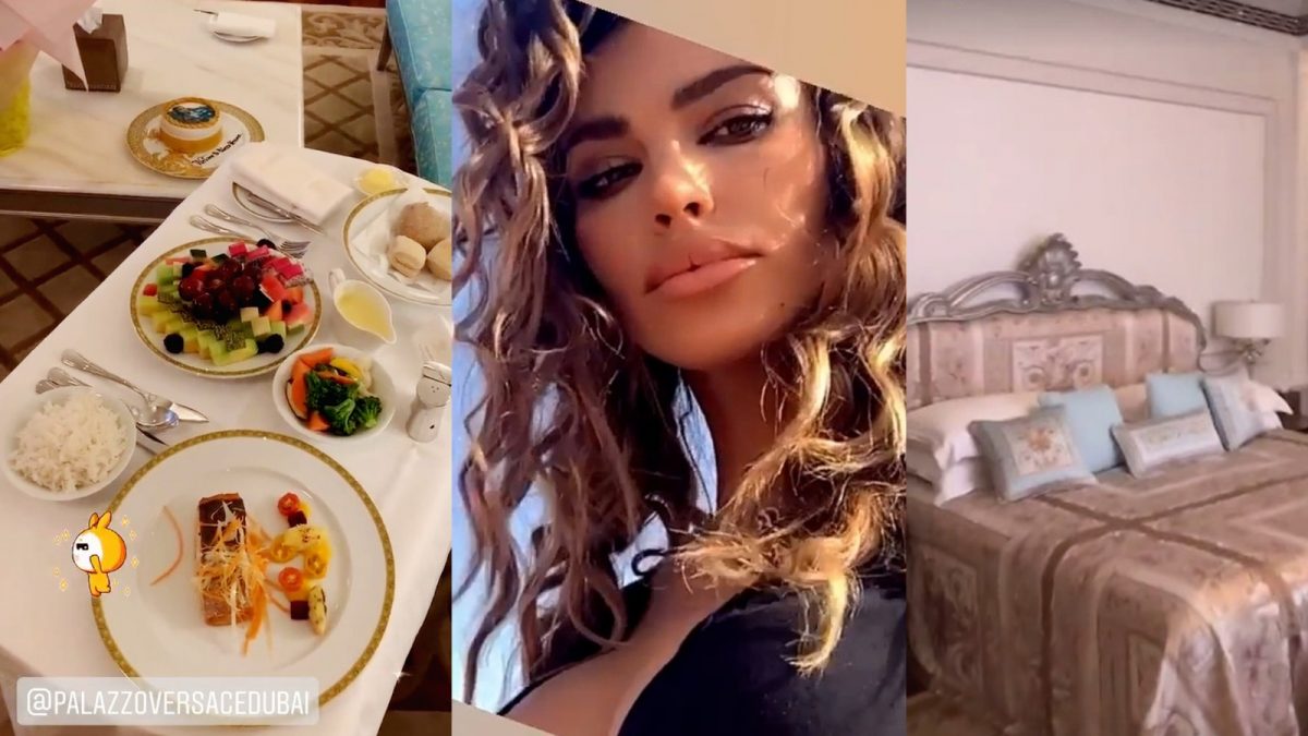 Celebra actriță care joacă alături de Lady Gaga și Al Pacino în superproducția „House of Gucci” s-a cazat la hotelul de cinci stele Palazzo Versace Dubai, unde a fost întâmpinată cu… o prăjitură cu chipul ei. Vedeta a filmat și în luxoasa cameră de hotel, inclusiv patul matrimonial care o aștepta după o lungă zi de filmări în deșert. Supermodelul a explicat că a venit cu treabă în Emirate, unde are un contract cu o celebră firmă de bijuterii. Mădălina Ghenea s-a filmat și în deșert alături de un ghid căruia i-a mulțumit pentru că a avut grij de “noi”. (VEZI ȘI: IMAGINI ÎN PREMIERĂ ALE SUPERPRODUCȚIEI ÎN CARE MĂDĂLINA GHENEA JOACĂ ALĂTURI DE AL PACINO ȘI LADY GAGA)