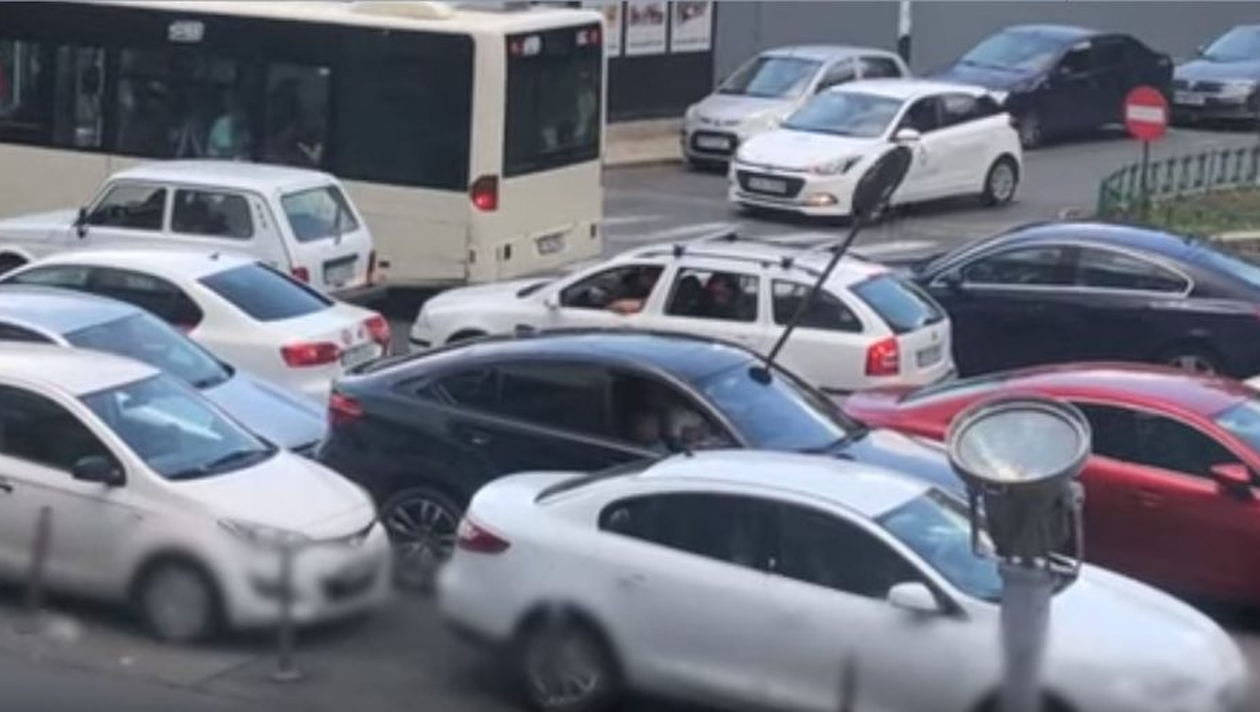 Un șofer din Capitală, care fusese blocat de o altă mașină, a decis să își „facă loc” împingând autoturismul din spatele său până spre trecerea de pietoni.