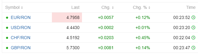 Moneda națională continuă să piardă teren în fața monedei europene, specialiștii anticipând că trendul descendent se va menține și în perioada următoare. Ieri, Banca Națională a României a comunicat un curs de 4,7834 lei pentru un euro, iar veștile, la primele ore ale dimineții, nu sunt deloc bune, leul continuând să se deprecieze.