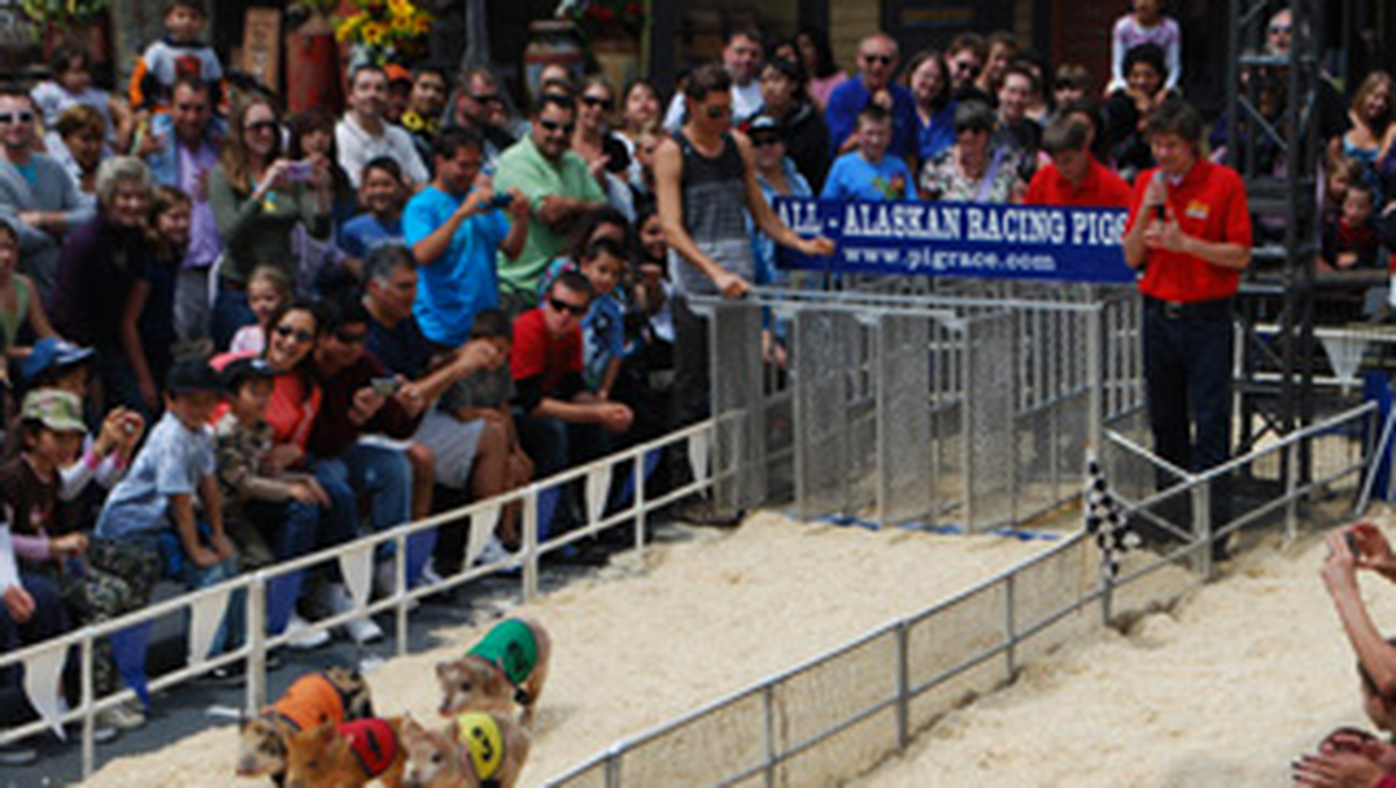 Protagonistii au fost mai multi porci, care s-au luat la intrecere pe o distanta de 18 metri. Incurajate puternic de galeriile de pe marginea pistei, animalele au fugit mancand pamantul sI au sarit peste obstacole aflate la 60 de centimetri inaltime. In alergare, porcii au atins o viteza de 32 de kilometri la ora. Spectacolul a fost unul extraordinar, toata lumea distrandu-se de minune. Aceste curse sunt foarte populare in sudul sI nord-vestul Statelor Unite. La sfarsitul cursei cu obstacole, porcii atleti au fost rasfatati cu cate o gustare pe placul lor.