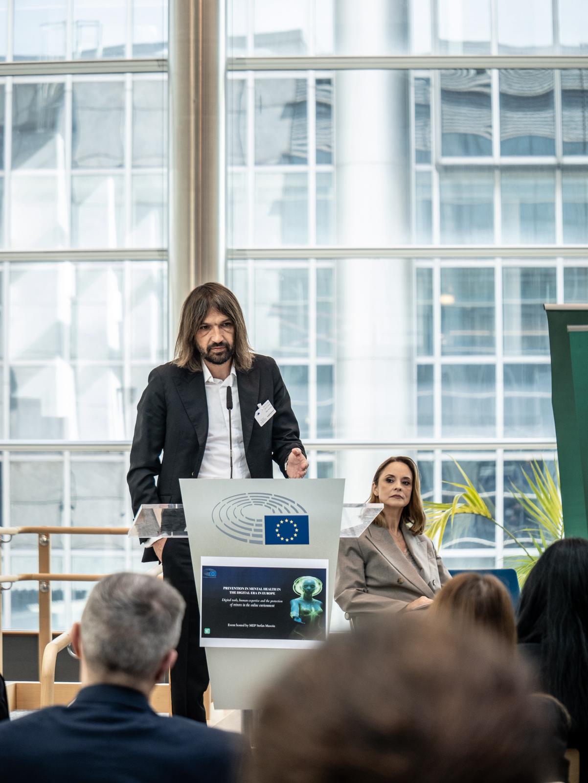 În același timp, în aceeași sală, Andreea Marin modera un eveniment dedicat sănătății mintale a minorilor în era inteligenței artificiale.