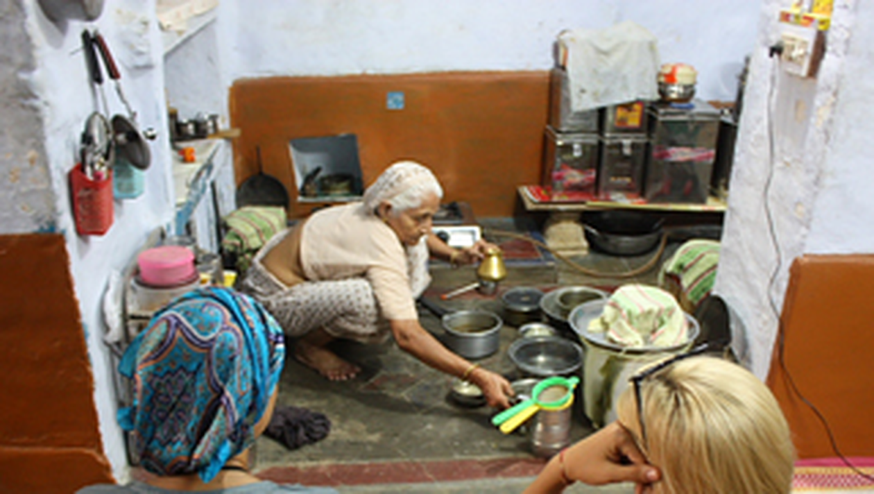 „A gatit numai din pozitia asta desculta, a sters pe jos si a sters si vasele cu aceeasi carpa, n-a spalat legumele de pamant, ci le-a pus direct in oala care fierbea, a sters cu mana farfuriile, daca ii mai cadea pe jos o bucata de mancare, o punea cu grija inapoi in farfurie… Dar uite ca am supravietuit! Poate suna inspaimantator, dar chiar a meritat. A fost ca un ritual masa asta sau ca o coregrafie. Am urmarit tacuta fiecare miscare si la final am gustat: recunosc, n-a fost pe gustul nostru, poate tocmai pentru ca era autentica mancarea si implicit diferita de ce eram noi obinuiti. In restaurante mancai varianta de mancare indiana pentru turisti. Dar repet, a fost un spectacol pe care, daca ajungeti vreodata in India, MERITA sa-l gustati!”, scrie Dana pe blogul ei.