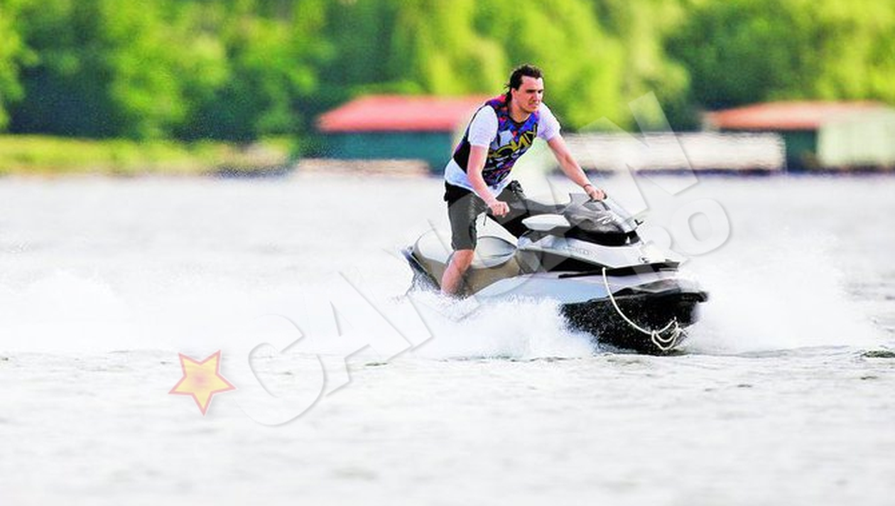 Pana sa-si insoteasca tatal in Golf, Dani Olaroiu isi omoara timpul plimbandu-se pe lacul Snagov, cu un skijet de ultima generatie.