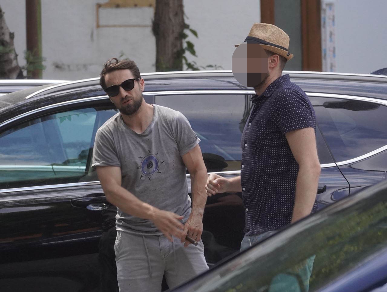 Dani Oțil coboară din mașină cu un trabuc în mână