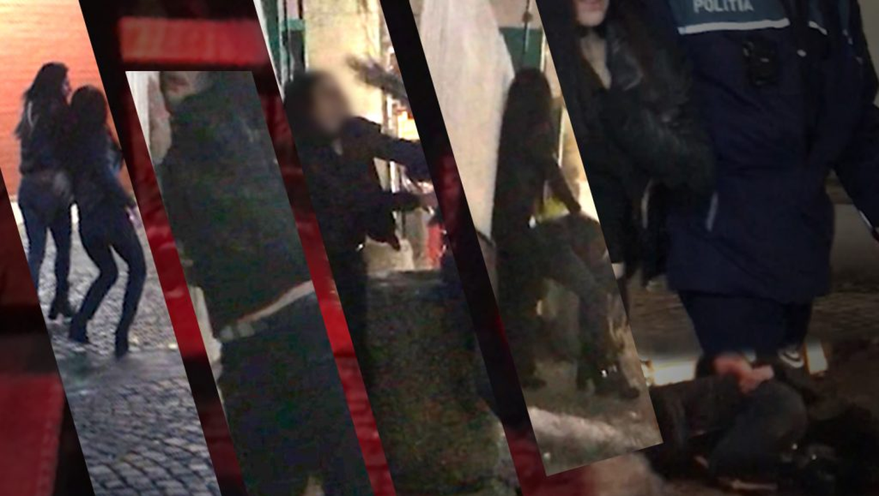 Imaginile sunt absolut halucinante. Mai multe tinere s-au îmbătat crunt de 8 Martie și au făcut un scandal monstru în Centrul Vechi. La un moment dat, din senin, una dintre ele a sărit la bătaie, lovind-o pe o fată dintr-un grup care trecea pe lângă bariera de intrare în zona de distracție. Cele două tinere, care de-abia se puteau ține pe picioare, au făcut un adevărat circ în Centrul Vechi. Mulțimea se uita ca la spectacol. La un moment dat, a intervenit și o patrulă de poliție, care le-a escortat pe fete pentru ca scandalul să nu escaladeze. Cu toate acestea, una dintre tinere a lovit-o pe cealaltă chiar sub ochii oamenilor legii. (VEZI ȘI: Orgie bahică la spitalul de nebuni)