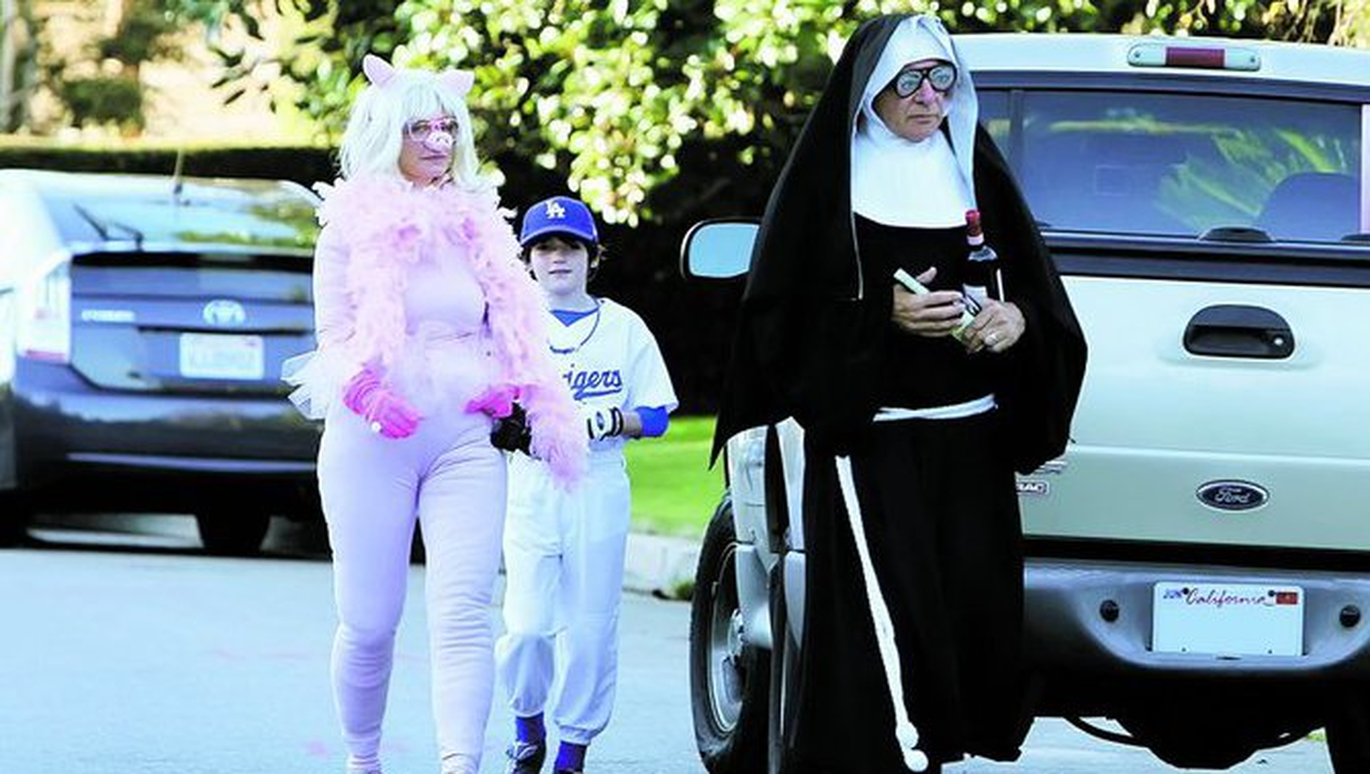 Cei doi au mers la o petrecere de Halloween, insotiti de fiul lor, Liam. Daca pustiul era imbracat absolut normal, parintii au ales costumatii nebunesti. Harrison s-a deghizat intr-o calugarita sobra, in timp ce Calista, care este foarte slaba in realitate, a ales un costum de purcelusa, de culoare roz, fiind greu de depistat sub aceasta tinuta. Cele doua vedete s-au oprit de nenumarate ori pe drum, fotografiindu-se in ipostaze care mai de care mai haioase, spre jena fiului lor, care nu a parut prea incantat de comportamentul pueril al parintilor lui.