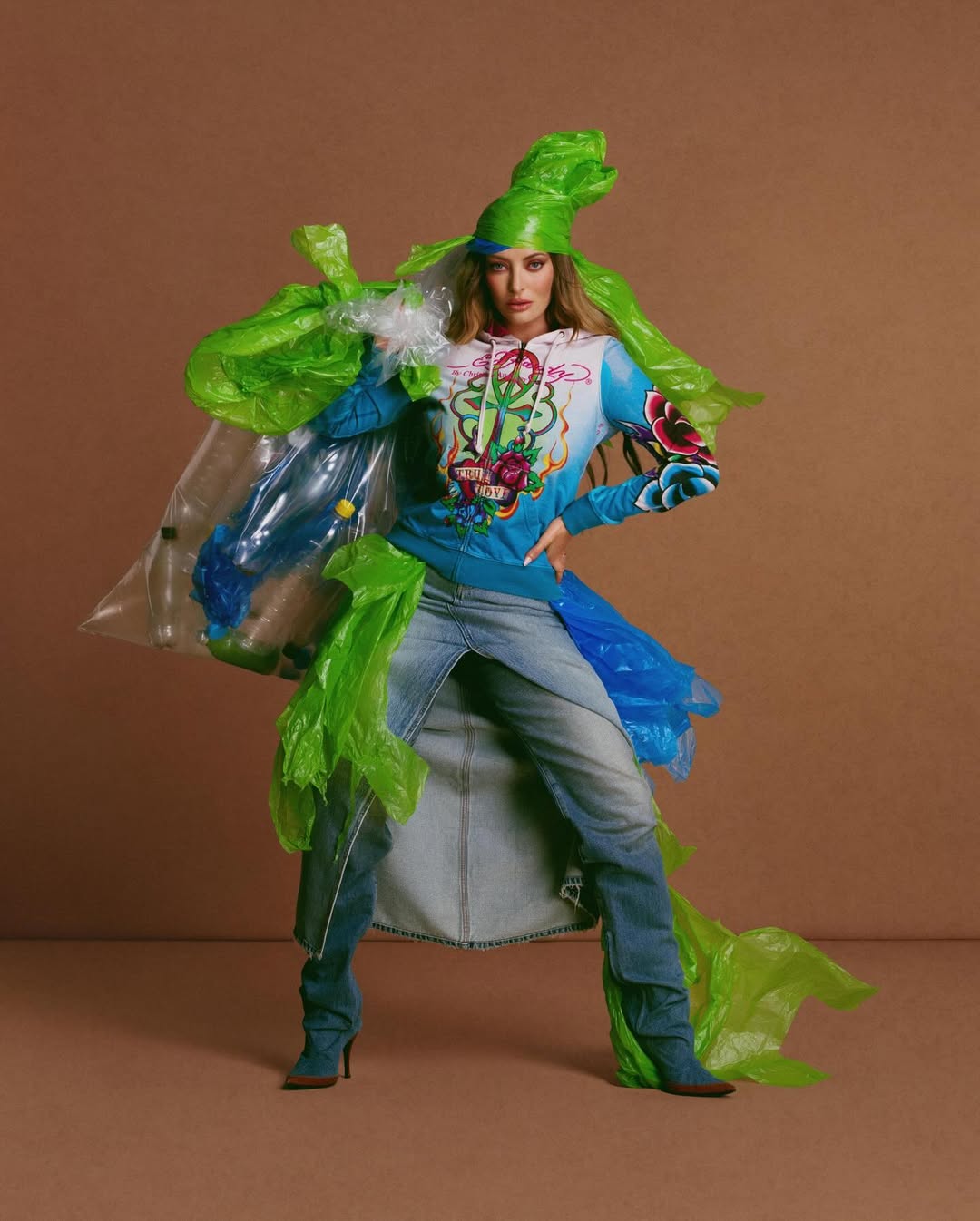 Mai mult decât atât, de această dată, artista a fost la cu totul un alt nivel. Jurata de la iUmor s-a fotografiat și într-o ținută realizată din saci de gunoi. De asemenea, în una din imagini, Delia și-a asortat hainele cu o oală.