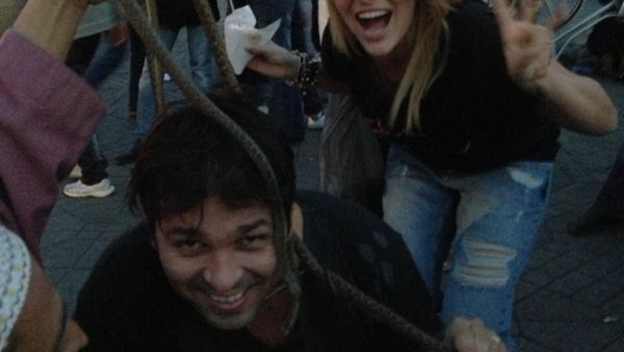 Mai exact, el a fost victima. Un marocan iscusit si-a scos serpii din cos si i-a pus in capul turistului curios.