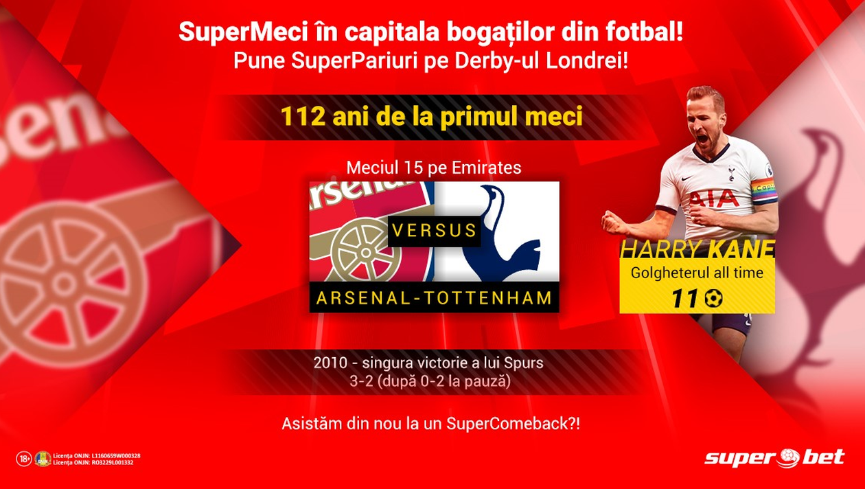 Fă-ți cont online și pariază pe Tottenham-Arsenal.