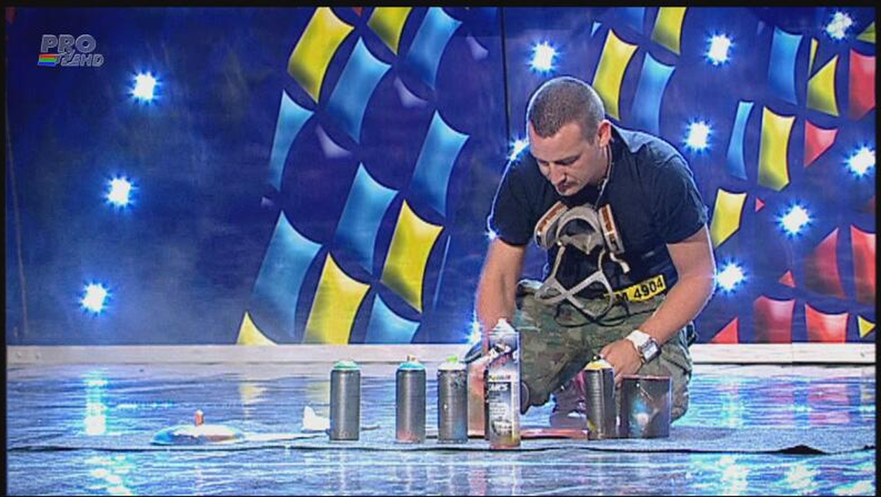 Pe scena concursului şi-a făcut apariţia Zlotan, 30 de ani, care a spus că el face picturi abstracte.
