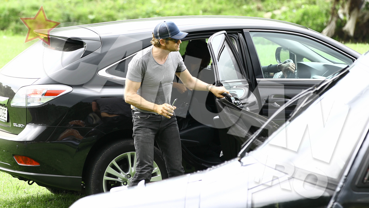 Duminica, la pranz, cand starul si iubita lui au plecat din zona Vidraru si s-au urcat la bordul unui elicopter catre o alta destinatie turistica, in momentul in care a coborat din masina, Butler nu a observant ca tricoul I s-a ridicat peste talie si a ramas blocat intr-un… “colacel”.