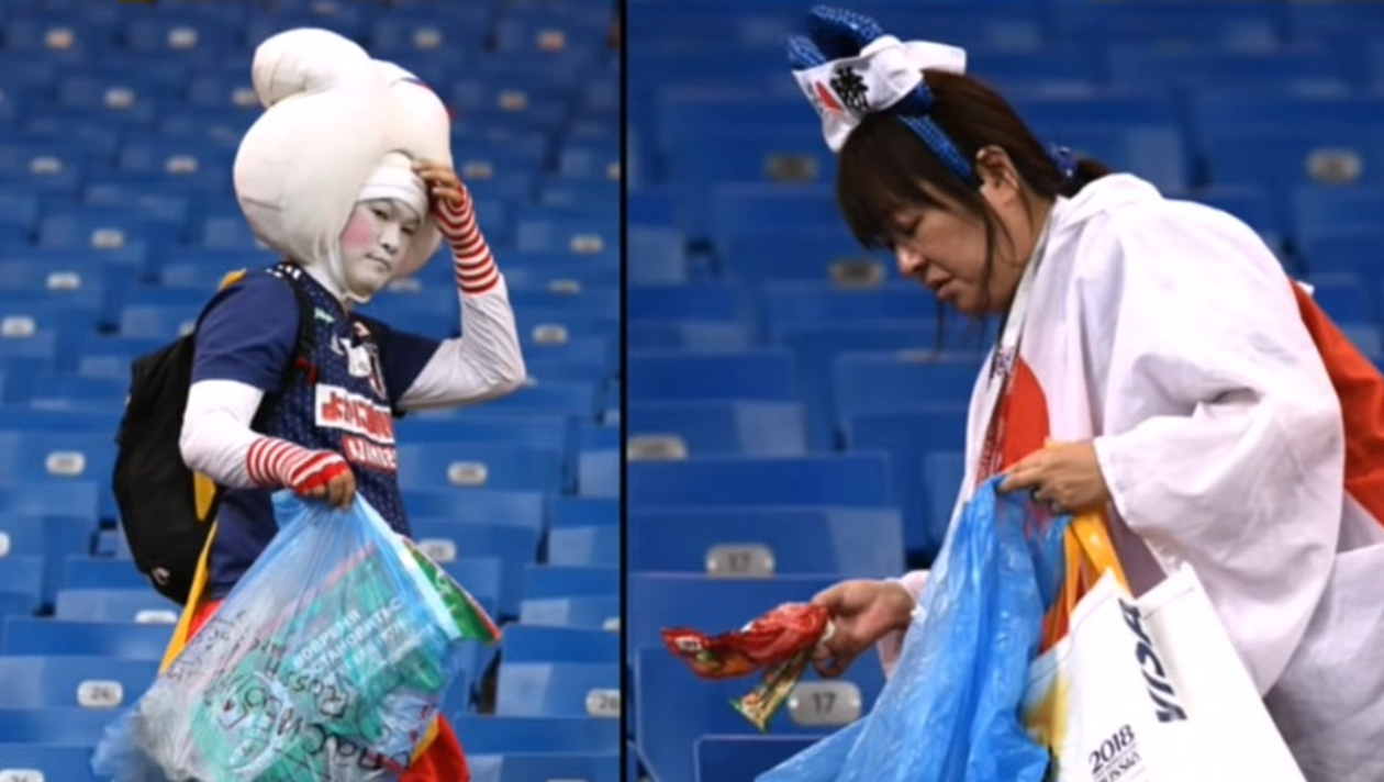 Jurnaliști din toate colțurile lumii au titrat că la scurt timp după ce s-a auzit fluierul de final al partidei dintre Japonia și Belgia, fanii celei dintâi echipe au rămas şi au curățat de gunoaie sectorul de stadion pe care l-au ocupat.