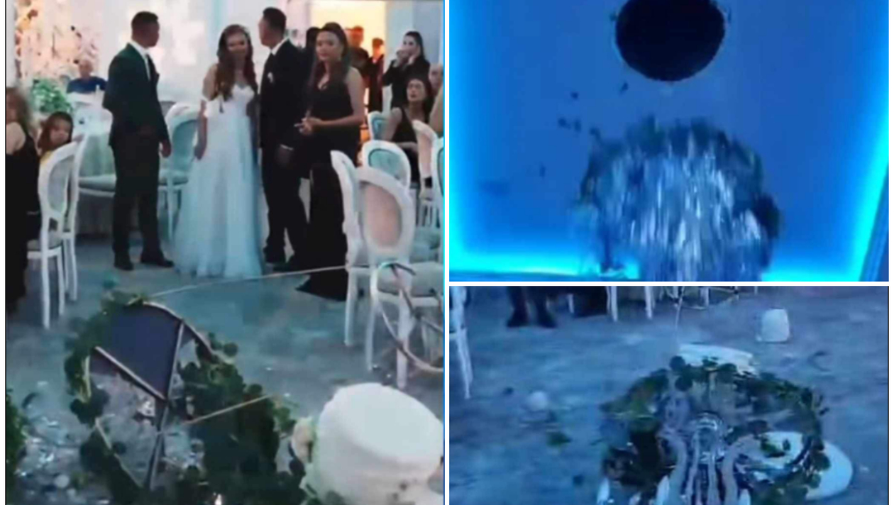 Așa cum spuneam, mirii și-au dorit un moment special la nunta lor, așa că au hotărât ca tortul lor să coboare din tavan. Sala în care s-a ținut evenimentul permitea acest lucru, însă, în fapt, totul a fost un adevărat dezastru. Mai exact, în timpul nunții, platforma ce trebuia să susțină tortul s-a prăbușit din tavan. Aceasta a căzut, iar momentul a creat panică printre invitați.
