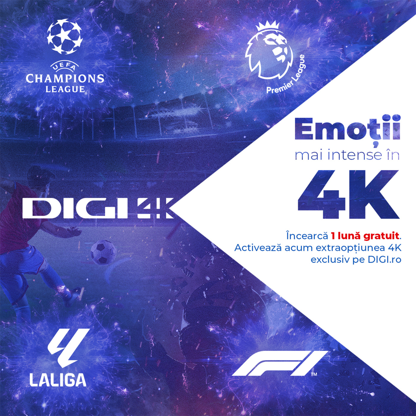 Digi RCS-RDS a venit cu un anunț îmbucurător pentru toți clienții gigantului de telecomunicații, chiar la început de toamnă. Este vorba despre o extraopțiune care costă doar 5 lei pe lună. Abonații pot avea parte de o experiență îmbunătățită, dacă doresc să urmărească meciurile din UEFA Champions League, Premier League sau LaLiga și cursele de Formula 1. Detaliile se regăsesc mai jos, în articol.