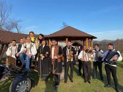 Aranjată și machiată, Emilia Dorobanțu nu s-a dat în lături să-și folosească buzele naturale la prepararea cârnaților. Caltaboșul și cârnații și-au găsit mâinile dibace, la fel și împăturitul sarmalelor care au fost lăsate în seama Niculinei. Din bucătărie, la paranghelie n-a mai fost decât un singur pas… iar în pași de dans ne-au colindat copiii din grupul Moștenitorul pe tonalitîți de chiuială.