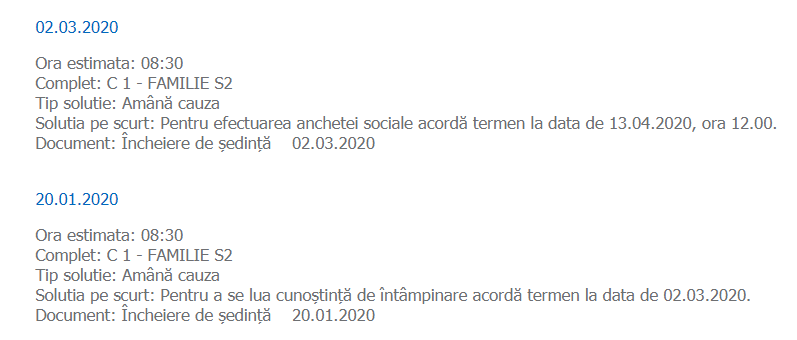 ”Soluția pe scurt: Pentru efectuarea anchetei sociale acordă termen la data de 13.04.2020, ora 12.00. Document: Încheiere de şedinţă 02.03.2020”, s-a arătat în decizia instanței. (NU RATA: E PRIMUL DIVORȚ ÎN IZOLARE DIN SHOWBIZ. SOȚIA ÎNCĂ NU L-A ANUNȚAT OFICIAL PE “PRINȚ”. “CIRCUL ESTE TRĂSĂTURA LUI DE BAZĂ, EU NU O SĂ..)