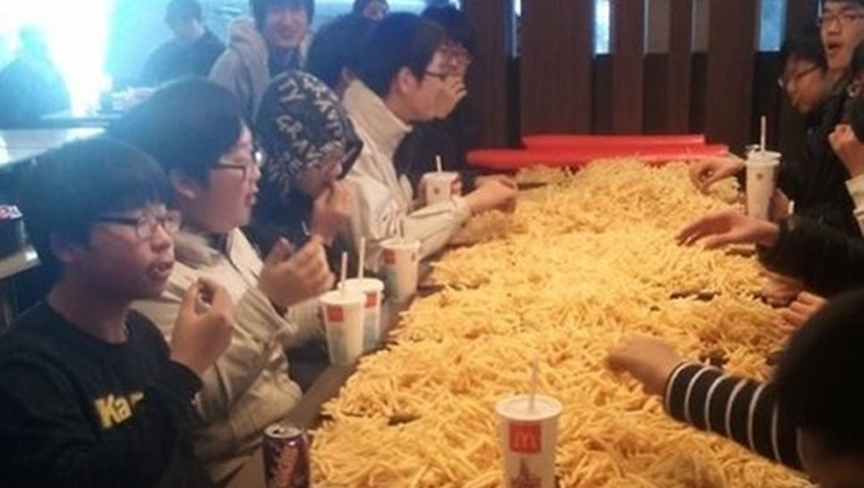 Săptămână trecută, mai mult adolescenţi din Coreea de Sud au cheltuit peste 250 de dolari pe cartofi prăjiţi.