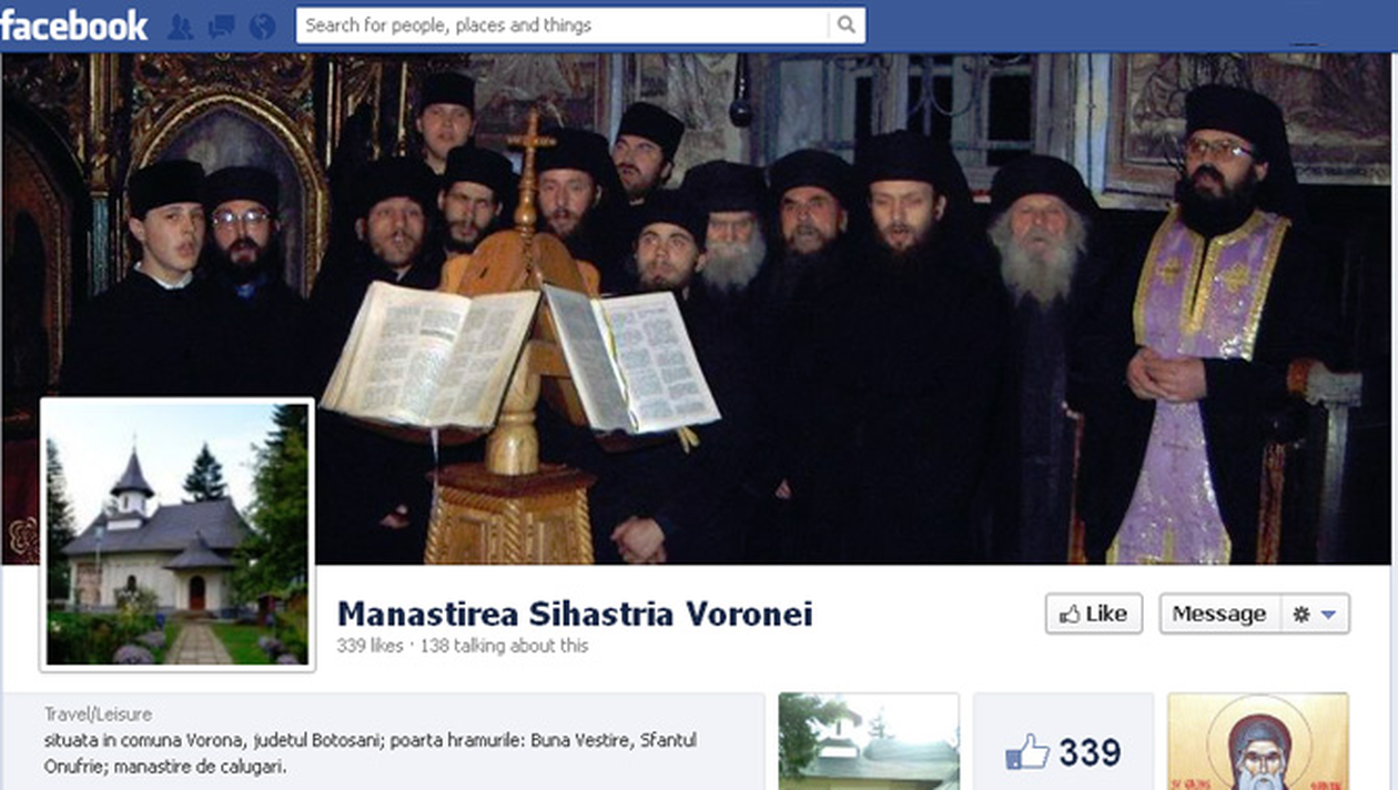 Staretul Manastirii Sihastria Voronei din Botosani a decis ca lacasul de cult sa aiba o pagina de Facebook pentru a comunica mai usor cu enoriasii.