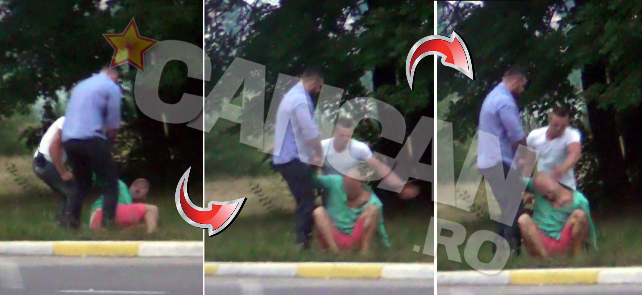 Cateva zeci de minute mai tarziu apare o cunostinta a celor doi barbati loviti cu bestialitate, care incearca sa-i convinga pe cei din tabara agresorilor sa ia un talon al unui autoturism.