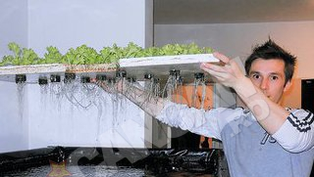 Cei doi gradinari ne-au dezvaluit cum functioneaza „ferma” lor: plantele sunt puse pe suport de polistiren, deasupra unor bazine cu apa, in care traiesc si pesti. „Este un sistem recirculant, apa trece prin toate cele trei bazine si este intr-un flux continuu. Folosim reziduurile de la pesti ca sa hranim plantele”, ne-a spus Miron Sergiu, unul dintre intreprinzatori. Tinerii spun ca in curand vor scoate pe piata si rosii, si ardei crescuti pe „acvarii”, folosind doar ingrasamantul natural provenit de la pesti. Acest sistem de crestere a plantelor este folosit deja cu succes in Olanda si Australia.