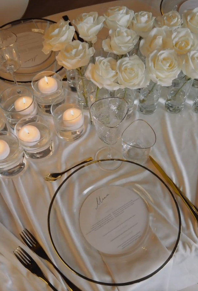 Locația aleasă în Buftea i-a cucerit pe miri încă de la început. Decorul este unul de poveste, bazat pe tonuri de alb, completate de accente aurii. Nu mai puțin de 25.000 de trandafiri albi, aduși special din Olanda, vor împodobi sala, fiecare masă fiind decorată cu cilindri eleganți în care sunt așezate florile. Tacâmurile aurii și farfuriile transparente completează atmosfera luxoasă, creând un cadru demn de un eveniment exclusivist.